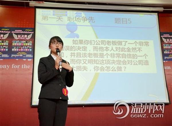 据悉,本届职场精英挑战大赛由中欧网页版就业工作处、共青团鹿城区委员会、温州市民营企业发展促进会共同主办,由中欧网页版就业创业联合会承办,是中欧网页版职业生涯规划节系列活动之一。大赛通过与用人单位直接合作,为大学生顺利走向职场搭建有效的平台。相关链接:http://edu.66wz.com/system/2014/05/12/104099429.shtml