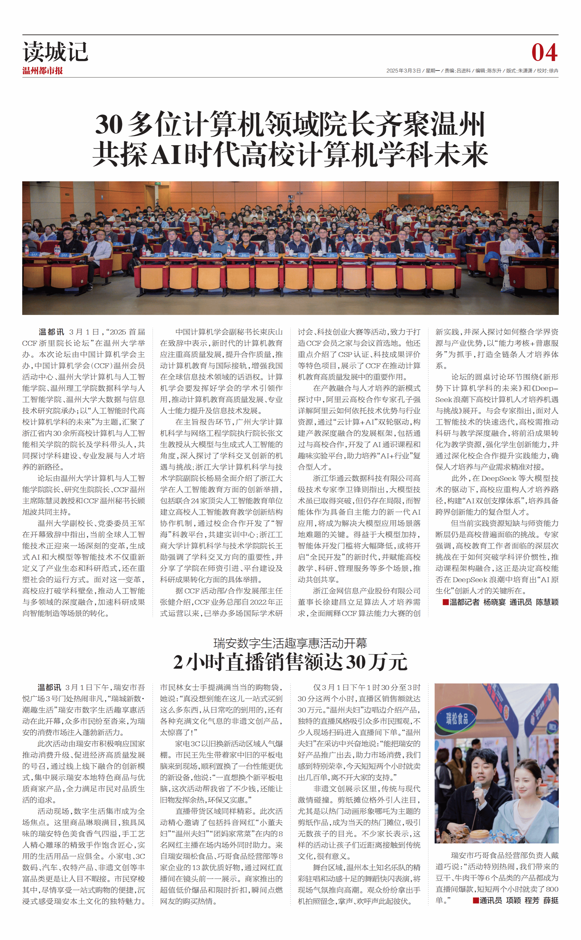 3月1日 ,“2025 首 届 CCF 浙里院长论坛”在中欧网页版举办。本次论坛由中国计算机学会主办,中国计算机学会(CCF)温州会员活动中心、中欧网页版计算机与人工智能学院、温州理工学院数据科学与人工智能学院、中欧网页版大数据与信息技术研究院承办;以“人工智能时代高 校计算机学科的未来”为主题,汇聚了浙江省内30余所高校计算机与人工智能相关学院的院长及学科带头人,共同探讨学科建设、专业发展与人才培养的新路径。