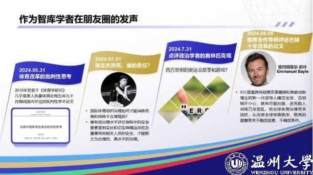 因为只有先对世界体育怀有赏识之心,产生了解的动力,才能更好地认知它。这部分我们围绕的核心主题是“中国如何提升国际体育话语权”。在此,我想跟大家汇报一下我过去一年所做的事。对于学者而言,实践在某种程度上意味着写文章。我很幸运,过去一年里,有两三篇文章未经任何技术手段助力,阅读量就达到了10万+。大家都清楚,在体育领域尚未破圈的情况下,这实属不易。想当年在体育微博时代,我曾有4篇阅读量超过100万的文章,这一直是我的骄傲。现在能达到10万+的阅读量同样不简单。我并非刻意追求破圈,只是希望大家能认识到这些问题。