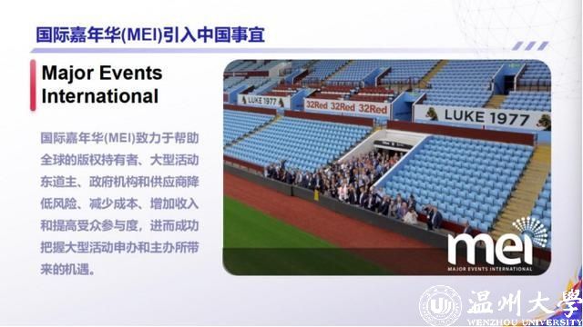 此外,我先前提到,我渴望将某些Major Events International引入中国,每年至少在中国举办一场。随着条件的成熟,这将使中国成为国际体育顶级资源的聚集地,包括国际体育中介和服务体系的提供者,以及拥有举办国际大赛经验的政府机构。如果这些资源能够汇聚到中国,尤其是成都,那么对于我们打造世界级体育城市将具有无可比拟的推动作用。