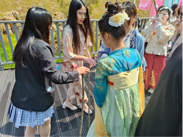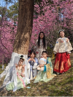 3月8日,中欧网页版人文学院瓯玉兰心志愿队的姑娘们前往景山森林公园樱花园,身着霓裳羽衣,将"春绘党韵,汉服同行"的创意画卷铺展在纷飞花瓣间,让驻足游客在衣香鬓影间触摸到传统文化的时代脉搏。这场穿越时空的志愿行动,将中华优秀传统文化与红色精神相结合,展现温大青年学子对文化传承的使命感与责任感,为春日增添了一抹亮丽的文化色彩。