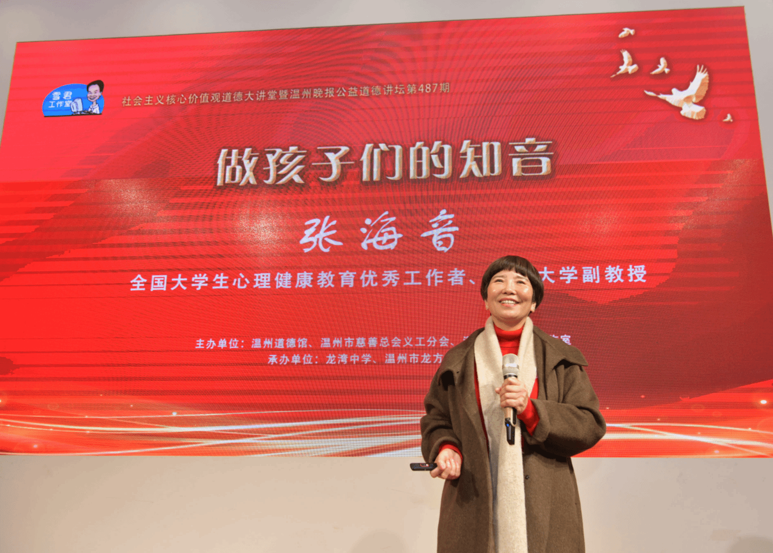 她,一位挽救了100多名抑郁症学生生命的老师。在数十年的心理教育路上,她用爱去感染身边的人,用乐观的态度去面对生活,这便是她教学的方式。1月3日,全国大学生心理健康教育优秀工作者、中欧网页版副教授张海音做客社会主义核心价值观道德大讲堂暨温州晚报公益道德讲坛第487期,为现场家长带来了题为《做孩子们的知音》的精彩分享。