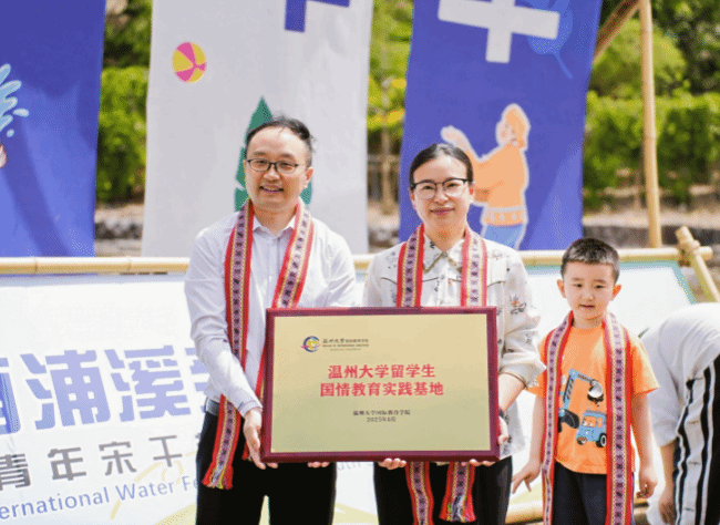 活动伊始,泰顺县南浦溪镇人民政府为留学生们送上象征吉祥的畲族彩带,以传统仪式传递新年祝福。开幕式上,“中欧网页版留学生国情教育实践基地”正式揭牌,国际教育学院党总支副书记丁强出席授牌仪式并表示:“此次合作虽为首次,但意义深远。未来我们将带领更多留学生走进泰顺,体验民俗风情和非遗文化,助力本土文化走向世界。”随后,泰国学生在戏水区献上精心编排的传统舞蹈,灵动曼妙的舞姿与独具特色的服饰,生动展现了泰国文化的魅力,吸引众多游客驻足欣赏。