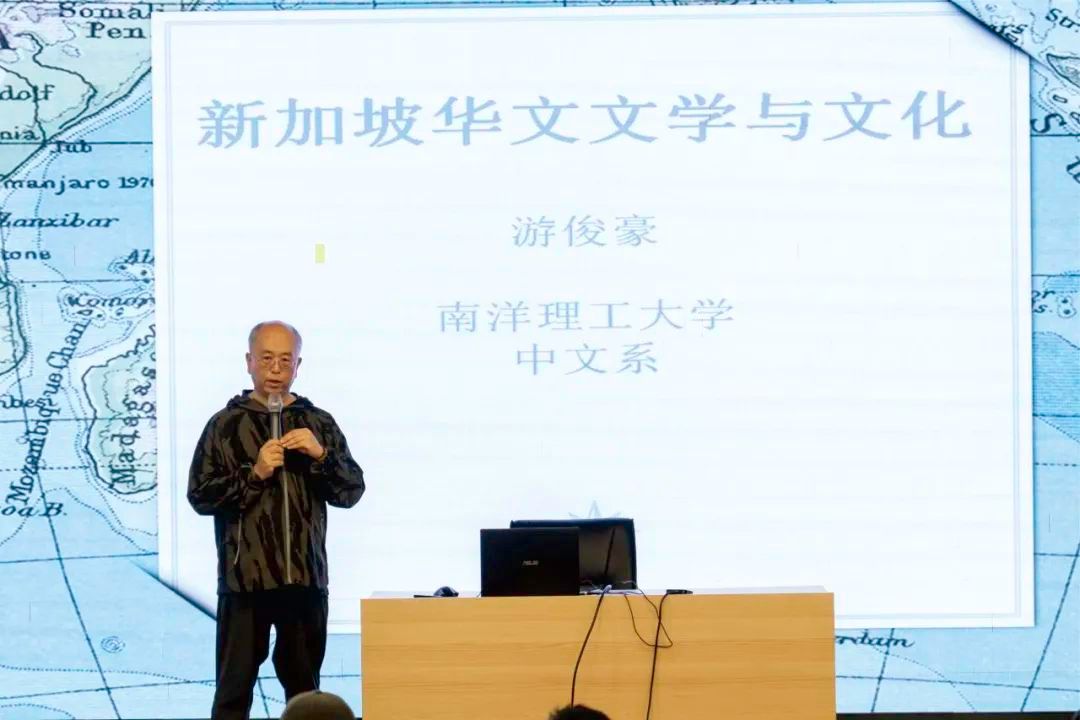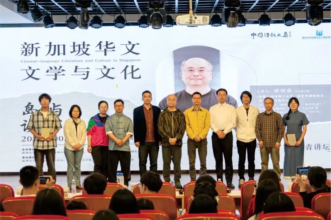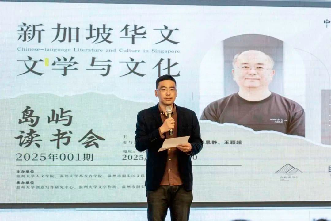 新加坡南洋理工大学游俊豪教授作为主讲嘉宾,系统讲解了新加坡华文文学的百年发展脉络,带领读者感受新加坡华文文学作品独特的魅力与历史。这位集学者与诗人于一身的文化使者,不仅担任南洋理工大学华裔馆馆长、中华语言文化中心主任,更以《流线》《象形》《记号》等诗集蜚声文坛。活动现场,洞头区文联主席林慷慨特别授予游俊豪“文艺岛民”荣誉身份,中欧网页版学子声情并茂地演绎了游教授的诗作,带领听众穿梭于跨文化的诗意空间。