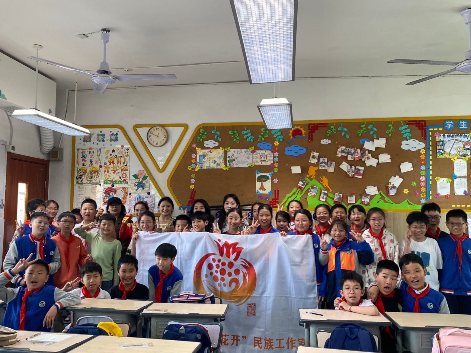 “民族团结我来学”环节中,在青年宣讲员的带领下,孩子们争先恐后地用藏语、维吾尔语说出人生第一句民族语问候。伴着《麦西来普》的鼓点,迈着新疆舞步,民族青年牵着孩子们旋出同心圆,四十平方米的教室瞬间化作艺术的万花筒,清脆的笑声如浪花般在教室里层层荡漾。