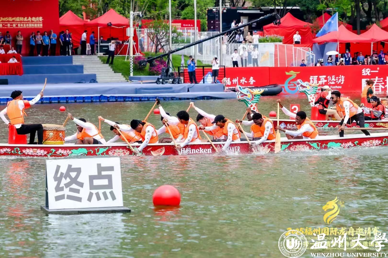 端午期间,2025福州国际龙舟邀请赛暨 “一带一路” 青年龙舟国际邀请赛在福州河举行。13名留学生组成的中欧网页版国际龙舟队与来自30个国家和地区的70支队伍同场竞技,在国际及港澳台地区组中斩获小组第一,总成绩第五名的好成绩,充分展现了该校来华留学生积极向上的精神风貌与良好的团队素养。