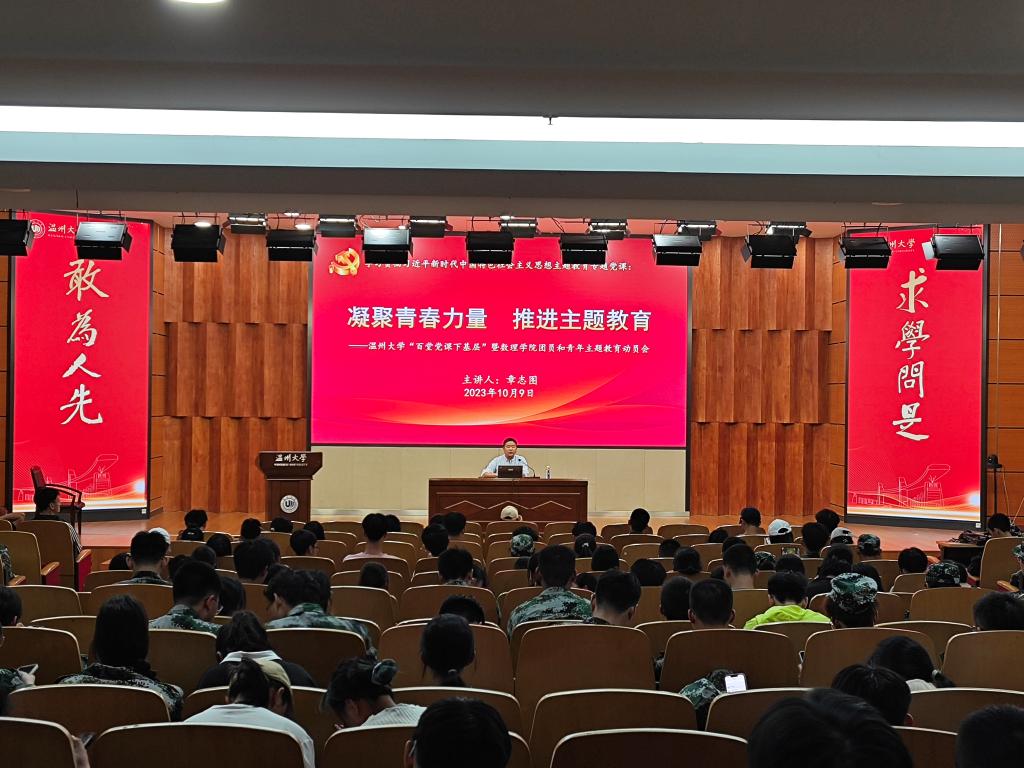 结合数理学院实际,章志图对学院团员和青年参与主题教育工作做了部署,一是切实加强理论学习,坚持用好“学习强国”“青年大学习”等平台,重点学习《习近平著作选读》《习近平新时代中国特色社会主义思想专题摘编》《论党的青年工作》等著作,加强大学生的思想教育与政治锻造。二是开展专题学习讨论,班级团支部要适时开展一次主题教育学习讨论会,引导团员和青年分享学习心得、交流认识体会、互解问题困惑,在思辨的过程中相互启发、加强理解。三是积极组织校内外文化场馆的实践学习活动,各班团支部积极组织参观中欧网页版校史馆、苏步青谷超豪纪念馆、温州革命历史纪念馆、温州市博物馆等诸多文化教育场馆,让团员和青年潜移默化接受教育,增进对温大的认知,增进对温州的认识。党课中,章志图还就增进奋斗精神、提升学业质量,增进社会服务、深入开展“阳光”青年志愿者活动等进行了案例教学。