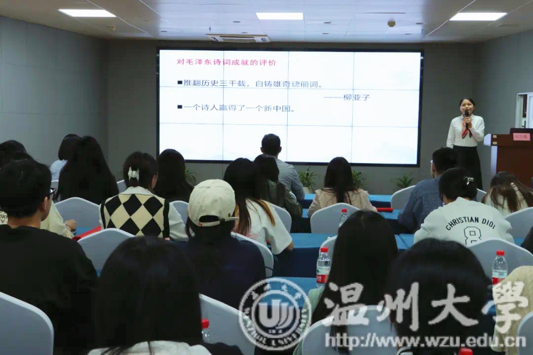 军休所副所长何月娥以《苍山如海——毛泽东诗词欣赏》为主题,带领师生们深入了解毛泽东诗词的魅力,感受革命先烈的家国情怀。毛泽东诗词,内涵丰富,意蕴深远,既是个人情感的抒写,更是对国家民族的深刻思考。从风雨南湖一叶红船上起航,到今天巍巍巨轮的破浪前行,一百年风雨兼程,一世纪沧桑巨变,中国共产党始终践行初心和使命,带领全国各族人民绘就了波澜壮阔的壮美画卷。