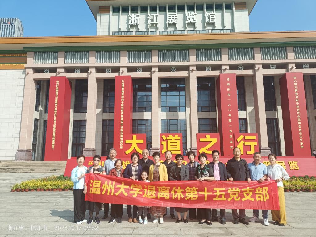 为深入开展学习贯彻习近平新时代中国特色社会主义思想主题教育,引导老同志持续全面深刻领悟“八八战略”引领浙江实现伟大变革的全局意义和时代价值,进一步从蕴含其中的世界观和方法论中汲取奋进力量,10月17日上午,中欧网页版离退休第十五党支部组织支部党员和温大离退休教职工协会杭州分会退休教师,一起前往浙江展览馆,参观由省委宣传部、省委政研室、省委党史和文献研究室共同主办,浙江日报报业集团、浙江广播电视集团、浙江省文学艺术界联合会承办的大道之行——“八八战略”实施20周年大型主题展览。