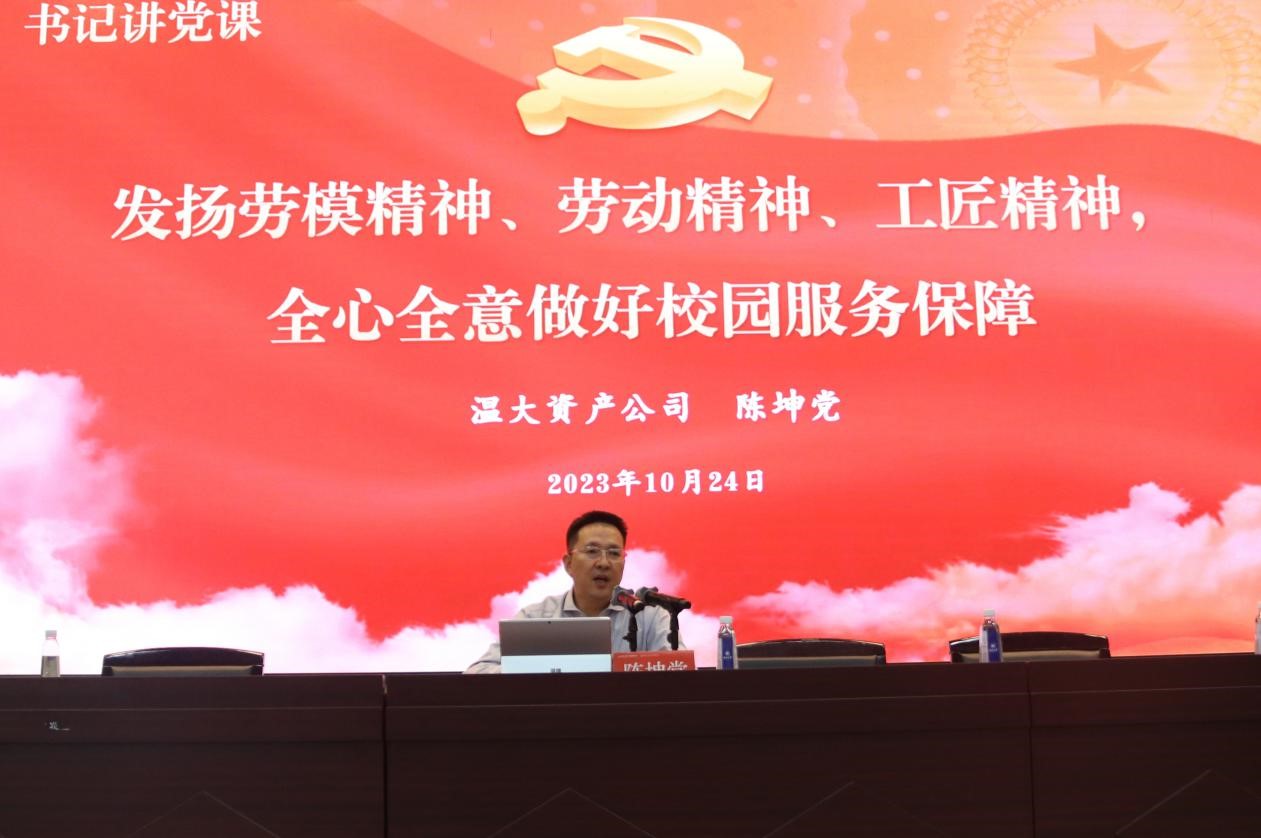 按照学习贯彻习近平新时代中国特色社会主义思想主题教育“学思想、强党性、重实践、建新功”的总要求,落实中欧网页版关于县处级干部“百堂党课下基层”活动,全面提升公司党员党性修养,团结职工奋进力量,资产公司党总支于10月24日在南校区9号楼报告厅,公司党总支书记陈坤党面向全体职工开展了主题教育书记党课,主题是“发扬劳模精神、劳动精神、工匠精神,全心全意做好校园服务保障”。