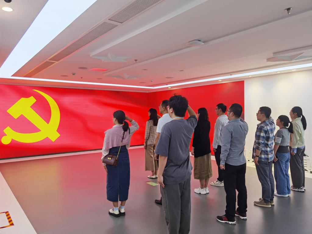 在参观瓯江红党建人才综合体时,党员们先后参观了党史教育馆、红色理想区、主题党日馆和党群服务区等板块。一幅幅图片、一段段文字、一个个视频,生动展示了中国共产党阔步走过的百年征程。在主题党日馆,包含丽带领师生党员面对党旗再次重温入党誓词,进一步坚定了理想信念,增强了党员政治责任感。