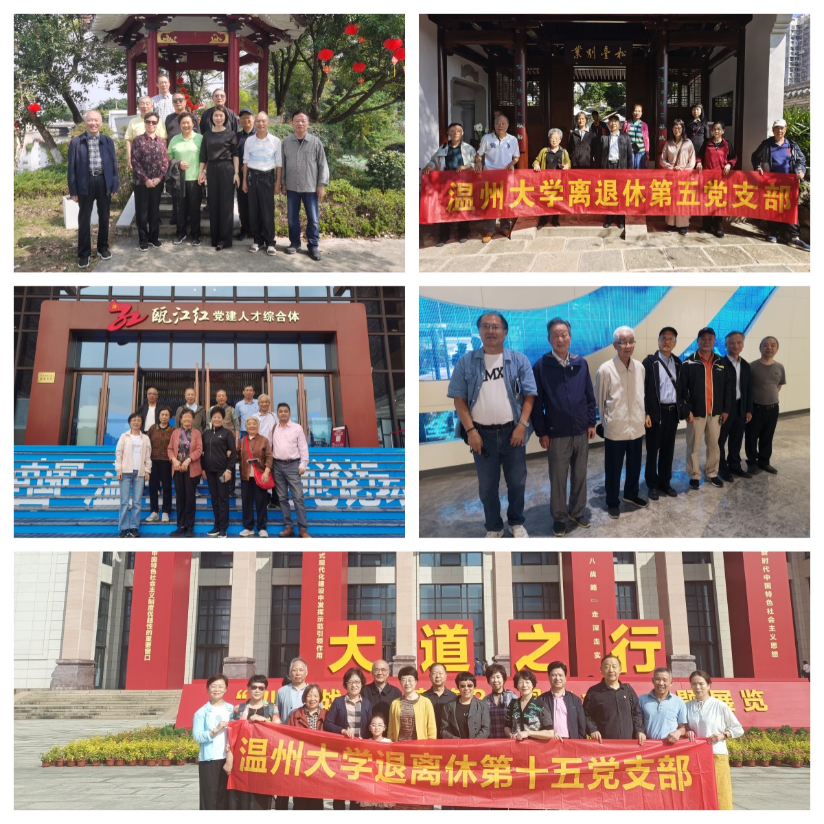 协助各支部通过实地研学、参观见学等方式开展考察调研,并计划陆续对接“循迹溯源学思想促践行”示范点开展现场学习。离退休第三党支部在平阳温师旧址进行主题教育集中理论学习的同时,开展“走看促”活动,先后参观中欧网页版平阳智能制造研究院、温师旧址纪念馆的“黄溯初专题馆”和“浙江省立温州师范学校旧址陈列馆”。离退休第五党支部赴位于九山湖畔的松台别业开展主题党日活动。离退休第九党支部赴三垟湿地在习近平总书记亲自栽种的大榕树下开展“循迹溯源学思想促践行”主题党日活动。离退休第十一党支部开展热学热议习近平总书记考察浙江重要讲话精神之后,组织党员同志们参观温州市规划展示中心。离退休第十五党支部赴浙江展览馆参观“大道之行——‘八八战略’实施20周年大型主题展览”。各支部在考察调研中不断加深对党的创新理论的理解,将理论学习向实践运用进行转化,在深学细悟中提高理论素养、坚定理想信念、升华觉悟境界。