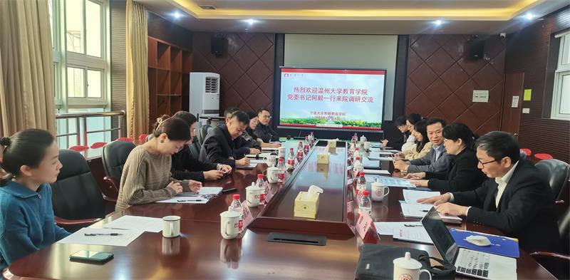 调查研究是谋事之基、成事之道。为深入贯彻习近平新时代中国特色社会主义思想主题教育,通过调查研究破解难题,11月13日至14日,中欧网页版教育学院联合温州市学前教育中心、温州市中等幼儿师范学校,一行7人由院党委书记何毅带队前往浙江师范大学儿童发展与教育学院、宁波大学教育学院、宁波幼儿师范高等专科学校开展学前教育专业招生就业及人才培养专题调研,副院长林琛琛、副书记章园园,温幼师校长蒋高烈,市学前教育中心徐冰瑶及学前系曾越博士等人参与调研。