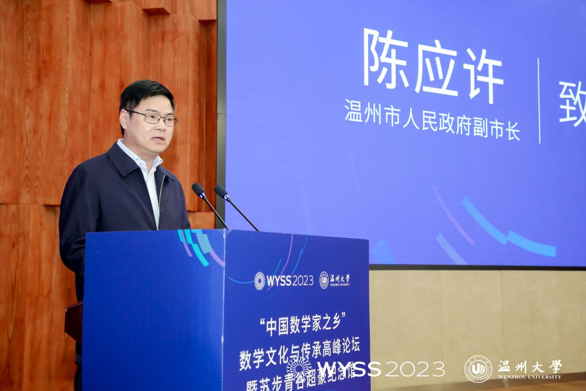 Then, Chen Yingxu also delivered a speech. On behalf of the Wenzhou Municipal People’s Government, he extended a warm welcome to the academicians, experts and guests, and expressed his heartfelt thanks to the leaders and people from all walks of life who had long cared for and supported Wenzhou’s reform and development. He said that Wenzhou was known as the “Hometown of Great Scholars in Southeast China”, the cradle of Chinese mathematicians and the hometown of mathematicians. It has been making constant endeavors to fortify its image as the “hometown of mathematicians” in the new era. For example, it created various platforms such as the World Young Scientists Summit, the China Mathematics Education Seminar, the Wenzhounese Mathematicians Research Center and the Gallery of Wenzhounese Mathematicians, and introduced the Construction Programme of Wenzhou Mathematicians’ Home. It gave full play to its rich resources of Wenzhounese mathematicians, and accelerated the introduction of a slew of mathematicians at home and abroad. In his speech, Mr. Chen suggested to gather the strongest brains to strengthen Wenzhou’s basic research in mathematics, to concentrate the greatest resources to help Wenzhou train mathematical talents, and to converge the best talents to build Wenzhou into a highland of talent innovation. He looked forward to the helping hand and support from academicians and experts to jointly polish Wenzhou’s image as the “hometown of mathematicians”.