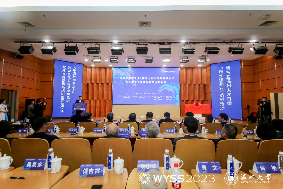 On March 12, the “Hometown of Chinese Mathematicians” Summit on Mathematical Culture and Inheritance and the opening ceremony of Su Buqing and Gu Chaohao Memorial Hall were held at Wenzhou University (WZU), hosted by the Zhejiang Association for Science and Technology and Wenzhou Municipal Government, organized by WZU, the Organization Department of Wenzhou Municipal Party Committee and Wenzhou Association for Science and Technology, and executed by the College of Mathematics and Physics of WZU. The summit was the first event of the 2023 World Young Scientists Summit and one of the activities of the 3rd Wenzhou Talent Day.