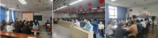 我校师生第一时间观看大会直播,线上线下学习讲话精神。校党委副书记庄兴忠,学工部、校团委相关负责人与全校共青团工作者、校级学生组织骨干于岩松堂白鹿厅主会场,全校各团支部于各学院分会场观看大会直播。