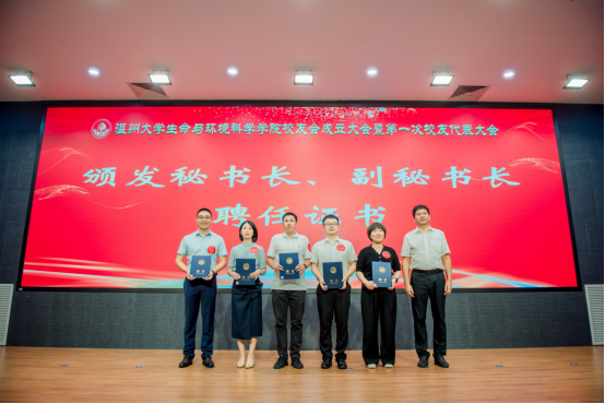 大会审议通过了《中欧网页版生命与环境科学学院校友会章程》和生命与环境科学学院校友会第一届理事会成员建议名单。校党委副书记庄兴忠为校友会授牌,并为理事会顾问、会长、副会长、理事、秘书长和副秘书长等颁发聘书。