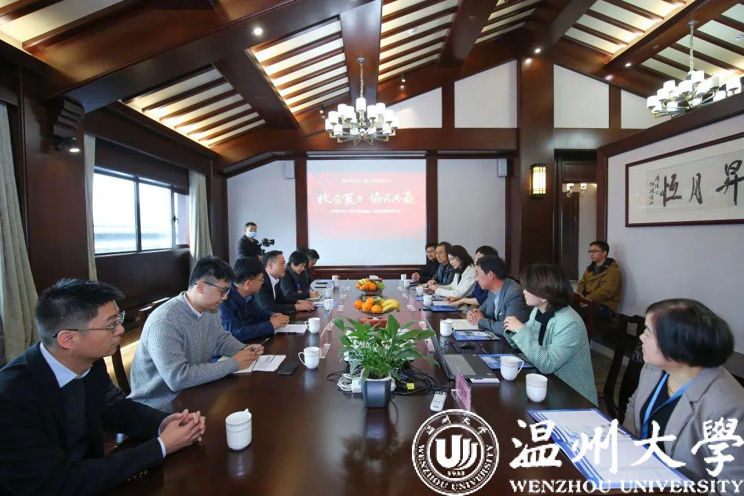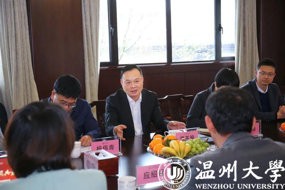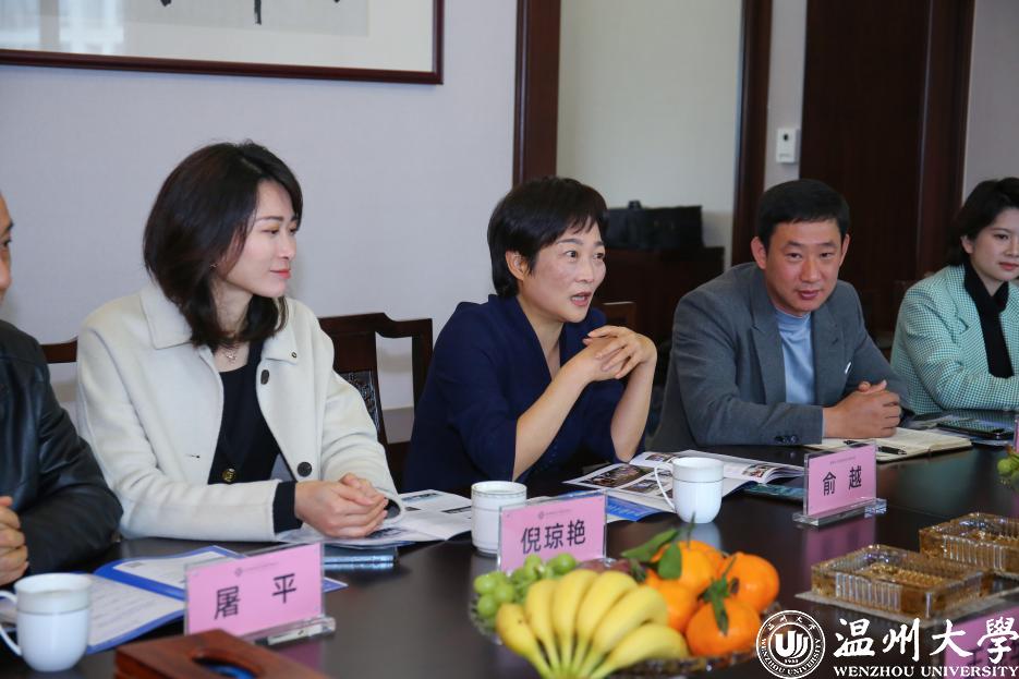 潘玉驹副校长介绍了中欧网页版办学历史沿革,近年来在党建思政、学科建设、人才培养、科研创新等方面的办学成绩,对浙江颐和和大健康产业投资有限公司的大力支持表示衷心感谢,体健校友秉持温大校训精神,在各行各业取得的成绩让母校师生倍感自豪。俞越副主席充分点赞了中欧网页版近几年的办学成果,希望校企双方在原有基础上,进一步增进了解、加强合作;浙江颐和董事长应绍斌校友从自身成长经历出发,感谢母校培养,表示母校对其创业理想的塑造起到了至关重要的引领作用,未来将个人事业与母校发展紧密联系,不断为助力学子成才做出贡献;诸暨慧佳颐和郦琼群董事长详细介绍了企业的经营现状、运营模式、技术创新等方面的情况,双方就产教融合、产学研合作、拓宽就业渠道、共同促进毕业生高质量就业等方面展开深入交流。