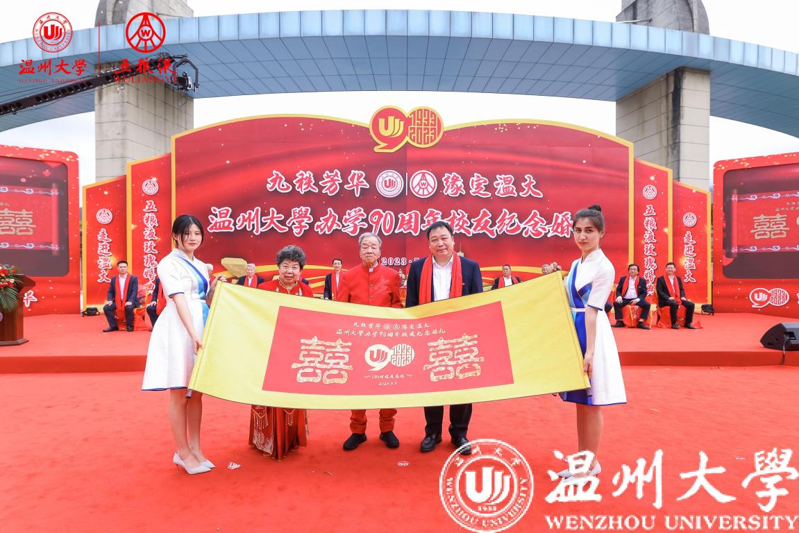 学校历任领导、各部门、各学院师生代表在主会场参加典礼,校友纪念婚礼还通过浙广直播等平台向社会进行了同步直播,海内外温大校友共同见证了这一浪漫时刻。