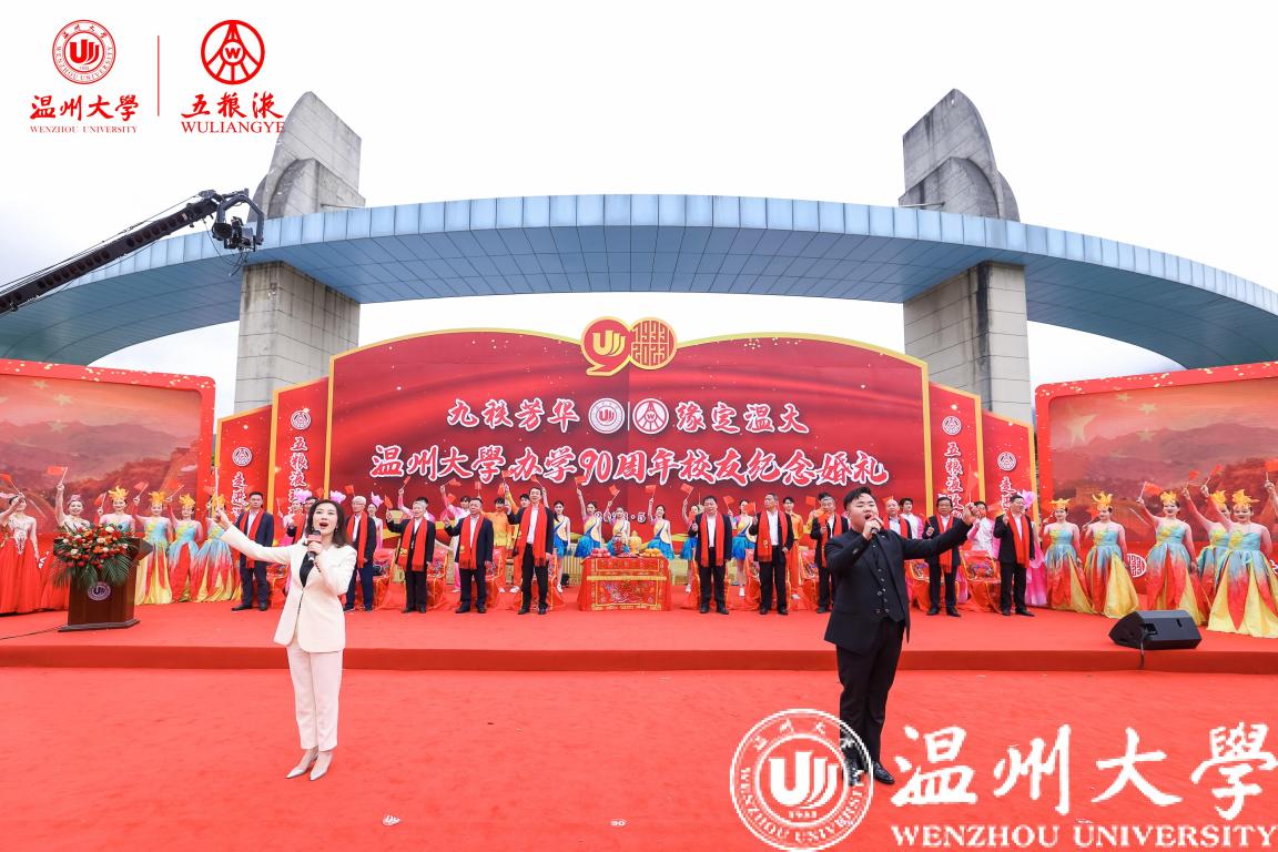 校友代表王定福、肖丽君夫妇发言,杨成玉、施品真夫妇向母校送上满载156对校友夫妻祝福的卷轴。“今天全天下最浪漫的莫过于母校温大,90华诞,156对校友集体向母校告白!”校友深情的说,是温大让爱升温,是母校温大让学子懂得了什么是学高为师、身正为范;是母校温大让学子懂得了什么是求学问是、敢为人先;是母校温大让学子懂得了什么是光大国族、造福人群。