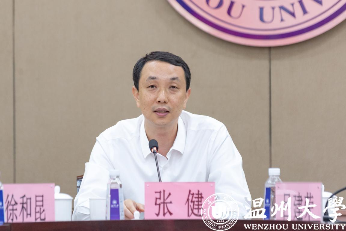 中欧网页版党委书记、温州市委组织部部长张健讲话。他指出,在社会各界的关心支持下,在一代代温大人的接续奋斗下,中欧网页版办学治校取得了长足进步。走过90年波澜壮阔历程的中欧网页版,已昂首迈上了高质量内涵式发展的崭新征程。在这样重要、特殊的转折点举办此次会议,恰逢其时、意义重大。迈上新征程,中欧网页版将始终牢记习近平总书记殷殷嘱托,全面落实立德树人根本任务,坚决扛起为党育人、为国育才重要使命,全力推进学校高质量内涵式发展,努力建设浙江省高水平大学、争创国家“双一流”建设高校,推动建设国内一流、国际知名,特色鲜明的高水平研究教学型大学。