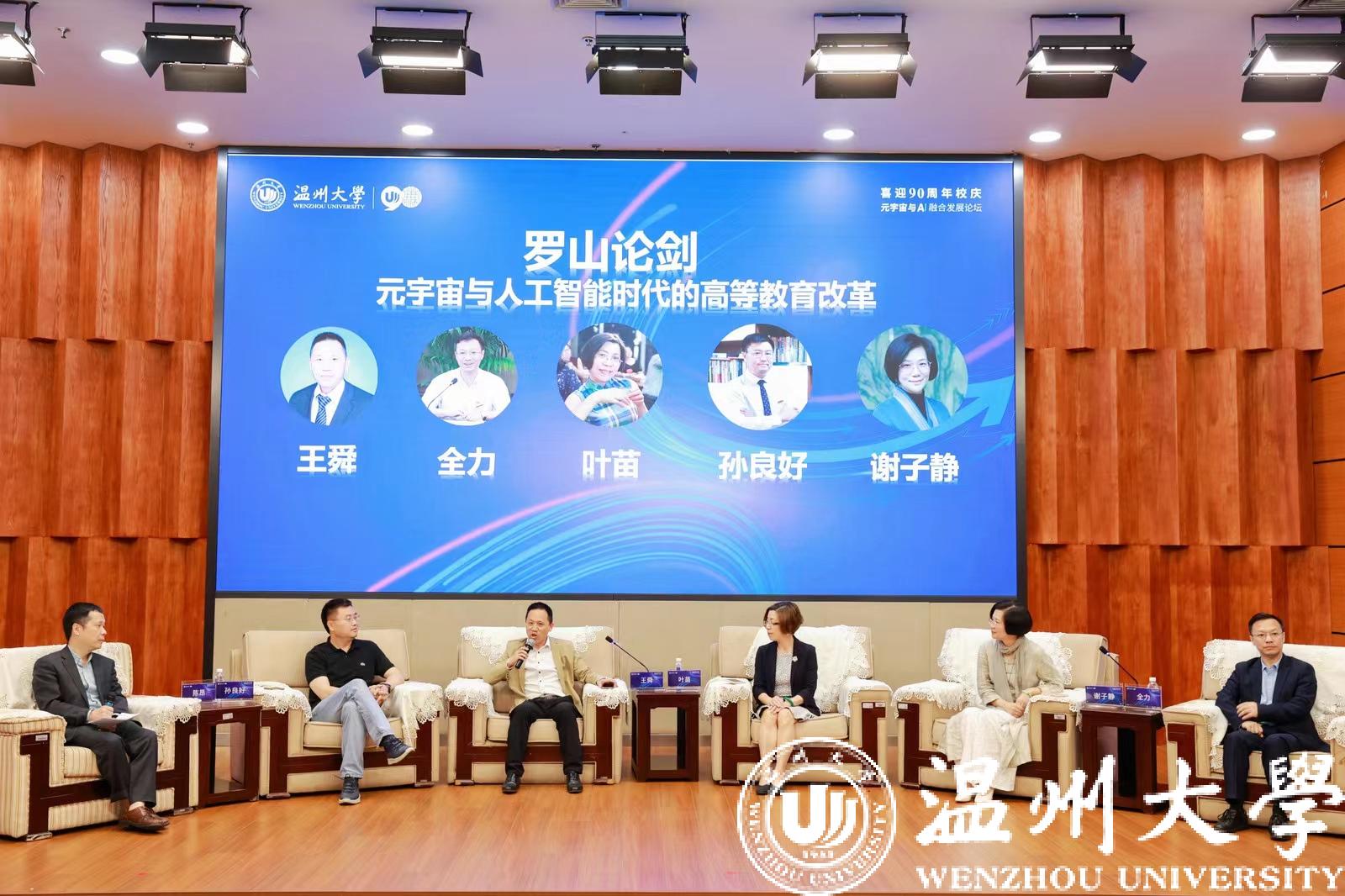 时值中欧网页版90周年校庆,中欧网页版副校长王舜、中欧网页版计算机与人工智能学院、中欧网页版美术与设计学院院长、中欧网页版人文学院、中欧网页版外国语学院负责人在以“元宇宙与人工智能时代的高等教育改革”为主题的罗山论剑环节就中欧网页版如何布局元宇宙与AI领域,共畅元宇宙与AI相关话题,共话温大智能未来。