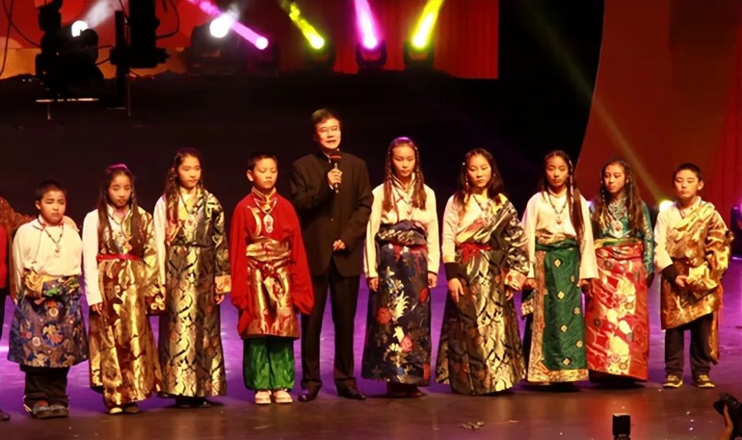 ▲叶正猛与玉树地震孤儿在新湖成立20周年晚会上同台演出