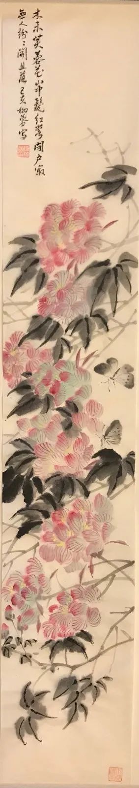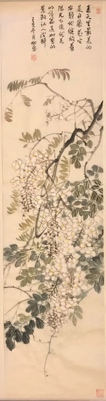 清代画家恽寿平在“南田画拔”中曾经说:“学晞古不必似晞古,师子畏何妨非子畏,胶柱者之不可与言也久矣”,她深知生活是艺术创作之源泉的道理。她重视对生活的观察和感受,对生活中的一草一木都倾注着深深的爱心,善于在平凡的生活中发现美。潘天寿先生说:“穷乡绝壑,篱落水边,幽花杂卉,乱石丛篁,随风摇曳,无处不是诗意,无处不是画意,有待慧眼慧心人随意拾取之耳。”潘先生的话激发着她的写生欲望与创作冲动,要做一个慧眼慧心之人必须通过深入生活,进行观察和写生,在大自然中寻找灵感,积累素材。她对紫薇、紫藤花情有独钟,经过长期的研究和探索,创作了一系列作品和不同题材的佳作,其创作作品大气、灵动、自带花香,温韵中蕴藏着隽秀,古朴中饱含醇厚。