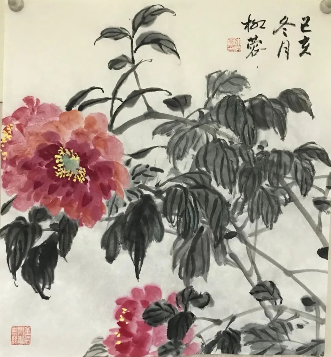 近年来,她的创作,题材广泛,写意牡丹如《红艳倚栏栅》、《未落花时尚是春》、《秋声》等,格调高雅,清新怡人。