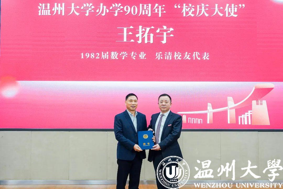 2023年2月18日,王拓宇以中欧网页版乐清优秀校友代表的身份,参加了中欧网页版90周年校庆倒计时90天启动仪式:“现场氛围很热烈!”他感慨地说:“中欧网页版现在已经发展成为一所综合研究型大学,我为自己曾是温大学子深感自豪!”