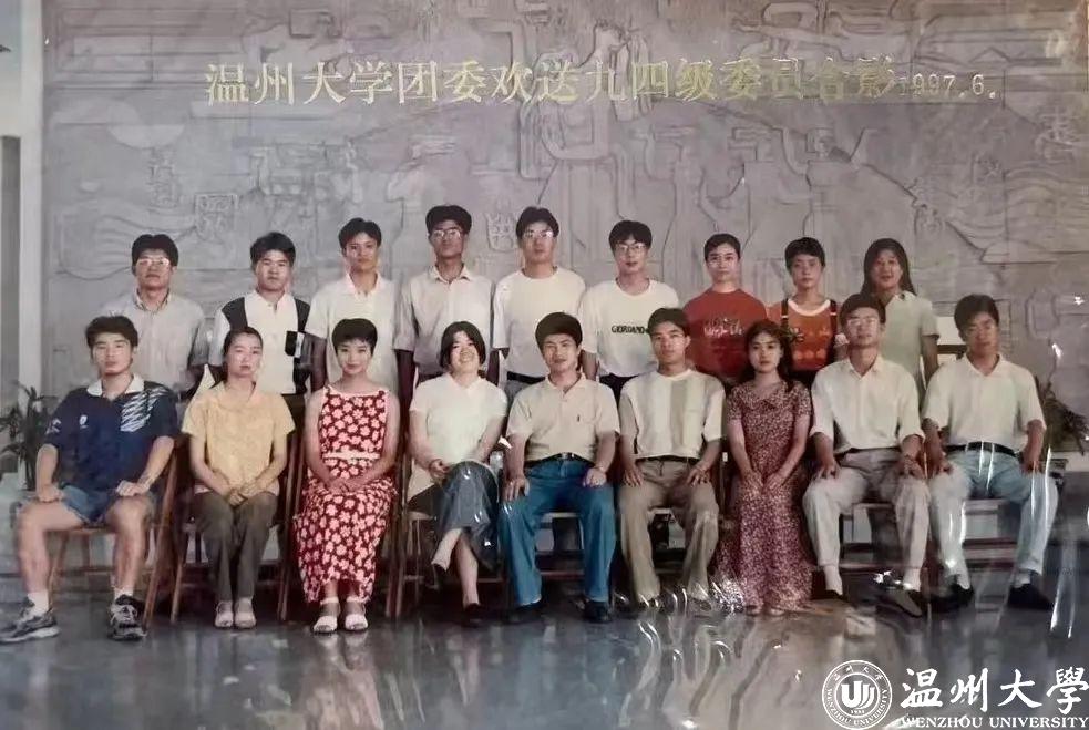 ▲校团委欢送94级委员合影(前排左三为谢明明)