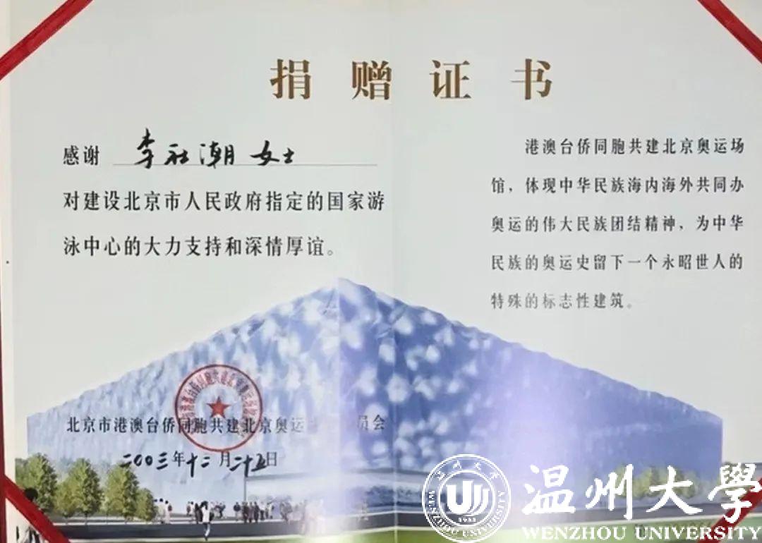 2003年,李社潮回温州参加第一届世界温州人大会,其间她和来自世界各国的华侨代表拜访中欧网页版,还参加了温大召开的座谈会。在自由发言时,李社潮表示非常敬仰老华侨,他们在温大创校之初给予了大力支持和帮助,“温大能有今天的建设和成绩,是几代温大人共同努力的结果!”